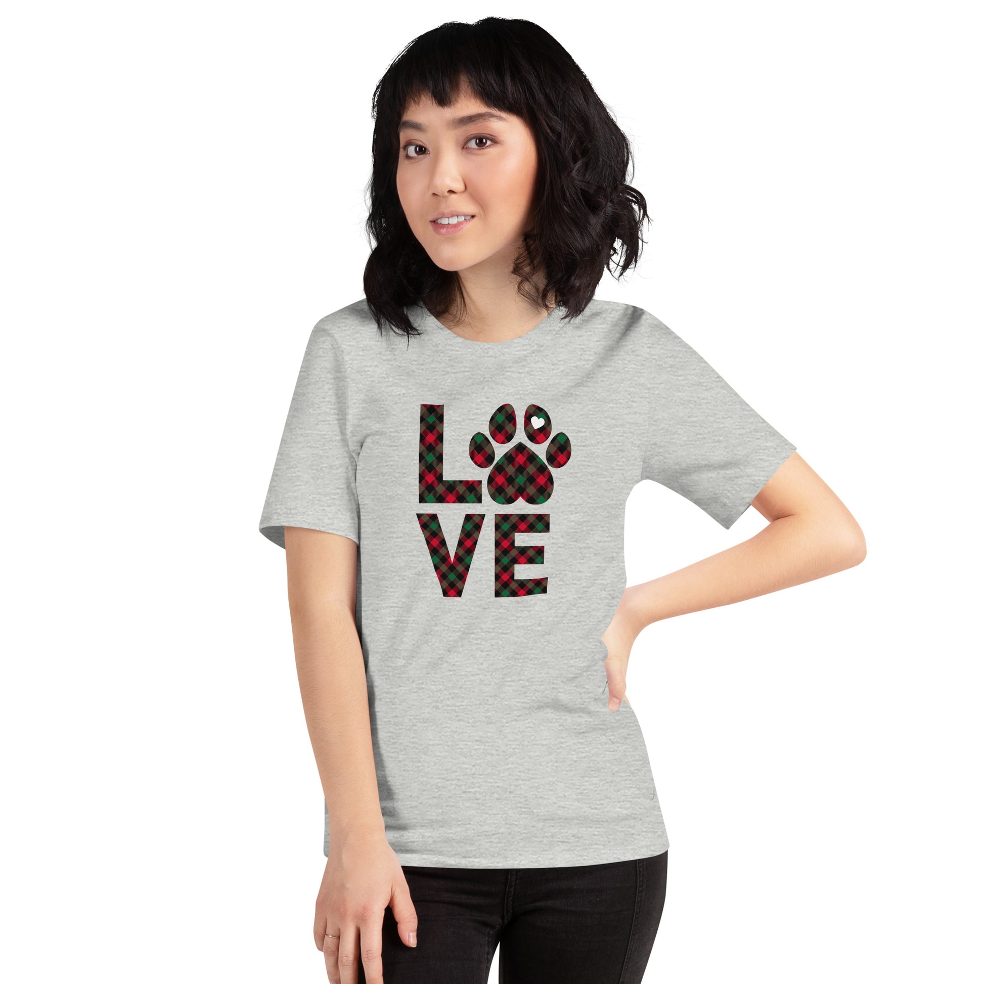 Who doesn’t love the holidays? Show your doggy love this holiday season with our Dog LOVE Christmas T-shirt. It is everything you've dreamed of and more. It feels soft and lightweight, with the right amount of stretch. It's comfortable and flattering for both men and women.