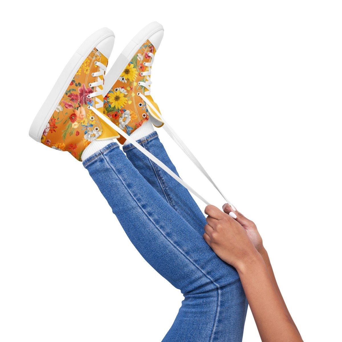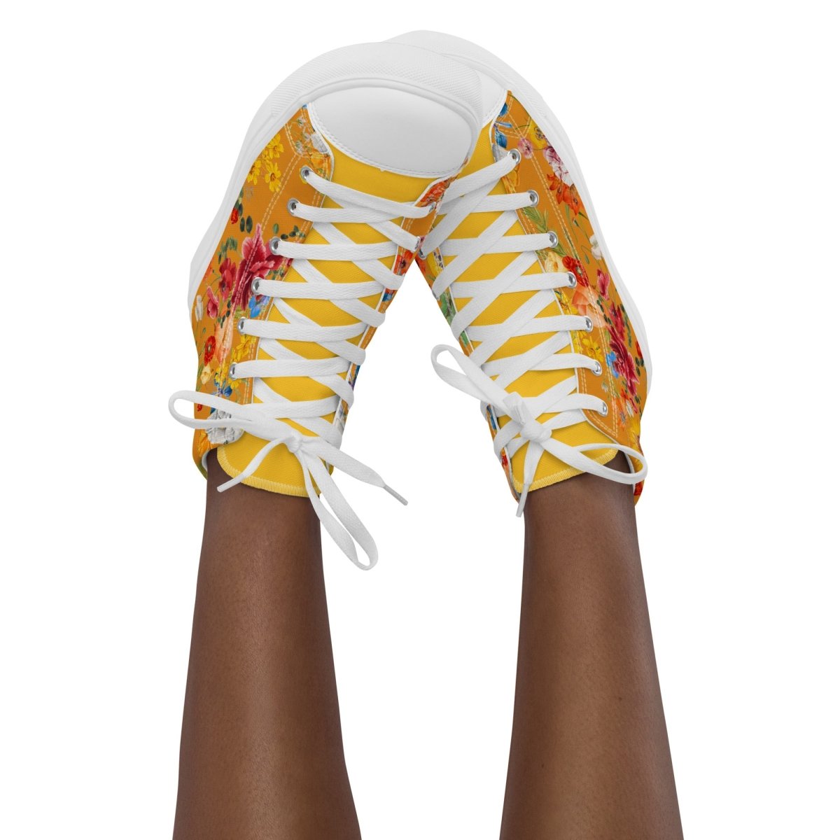 Step up your shoe game with these Women's Yellow Floral Sneakers. These one-of-a-kind kicks were designed by an independent artist with dog and wolf lovers in mind. They are perfect for dog lovers, dog moms, dog walkers, wolf lovers, and anyone who wants a unique pair of comfortable and trendy sneaks. Get yours now!